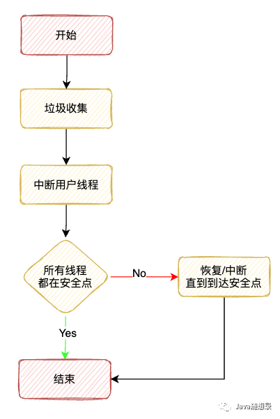 所以流程我们就清楚了:先是到达安全点,然后更新OopMp,然后进行根节点枚举,找到GC Roots