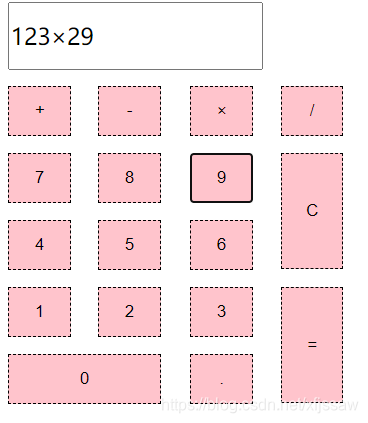 - 清屏:根据按钮的id判断是否为符号C,如果是的话,进行清屏操作。