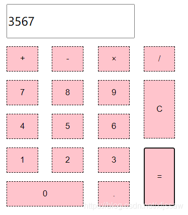 - 文本框显示:因为文本框显示的内容根据点击的按钮实时变化,为了修改简单,在这里使用JQuery选择器选中文本框,赋值给一个全局变量input,之后我们根据input的val()方法修改它的值就好。