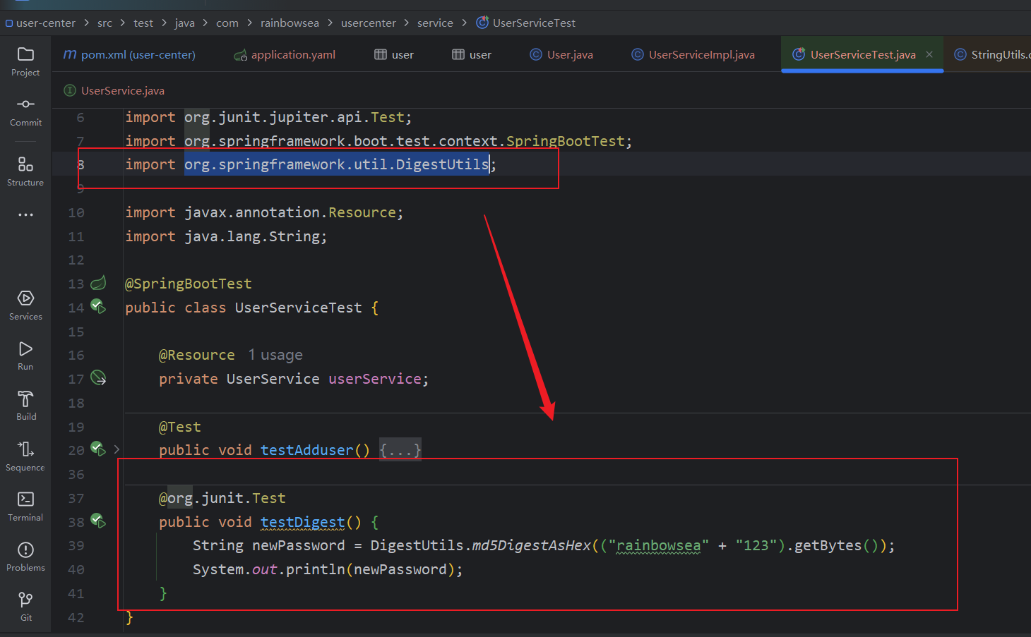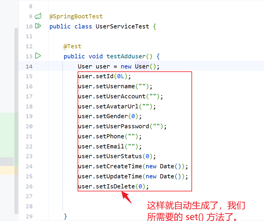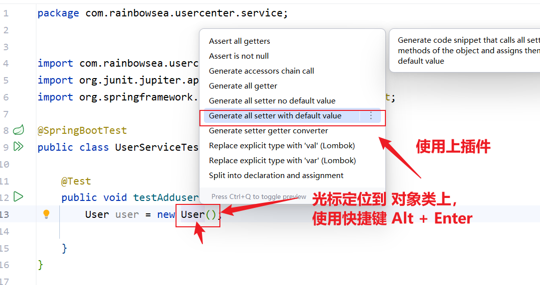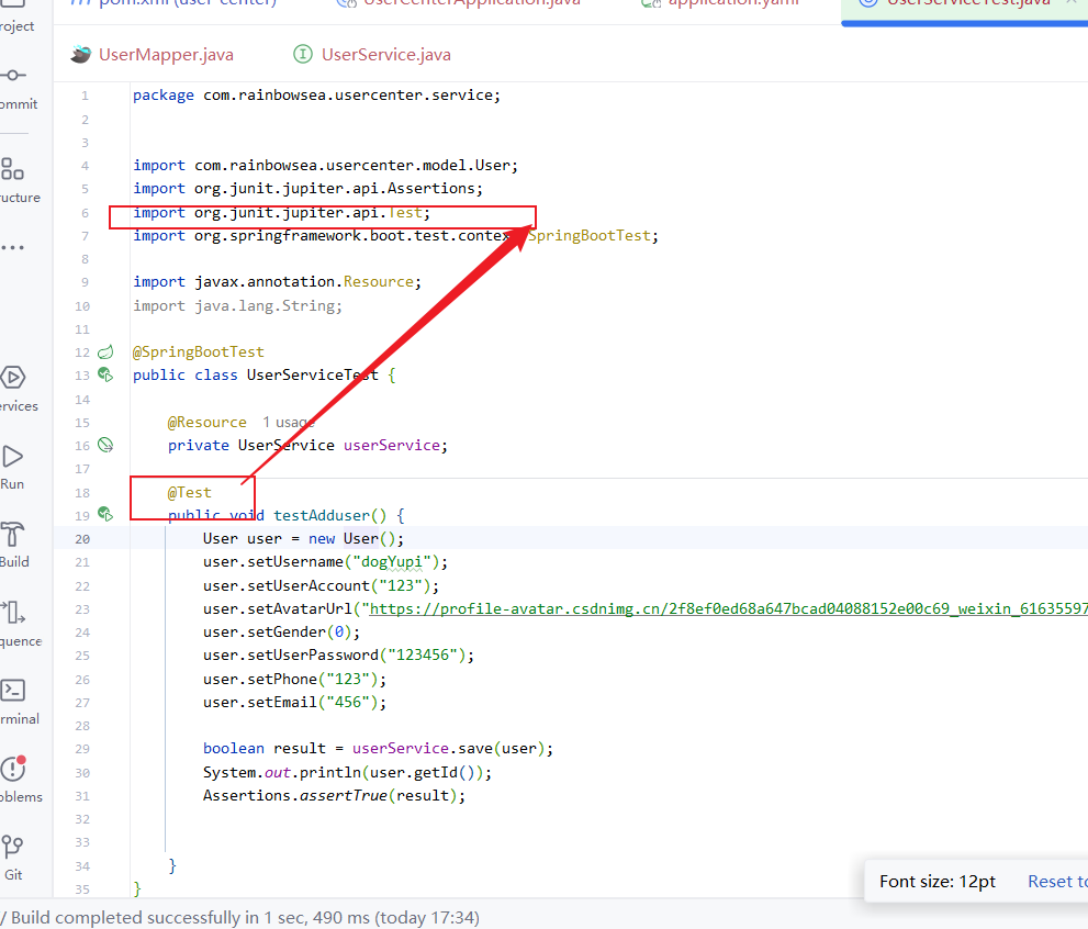 @ Test当中是org.junit.jupiter.api包下的 Test 就可以,自动帮我们启动 spring Boot 当中的项目类了。