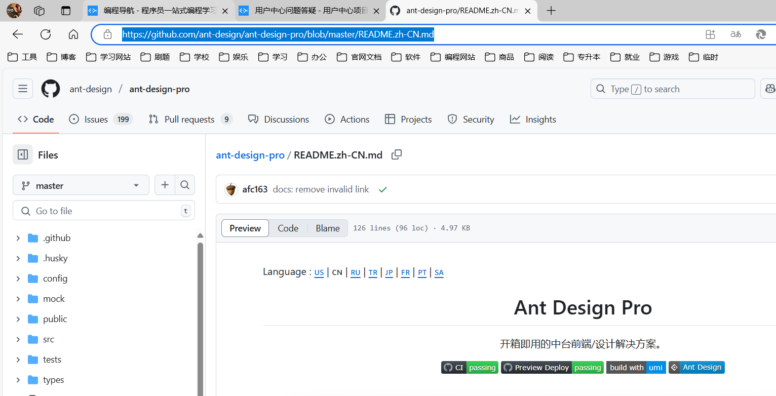 Ant Design Pro 的官方文档地址: https://pro.ant.design/zh-CN/docs/getting-started