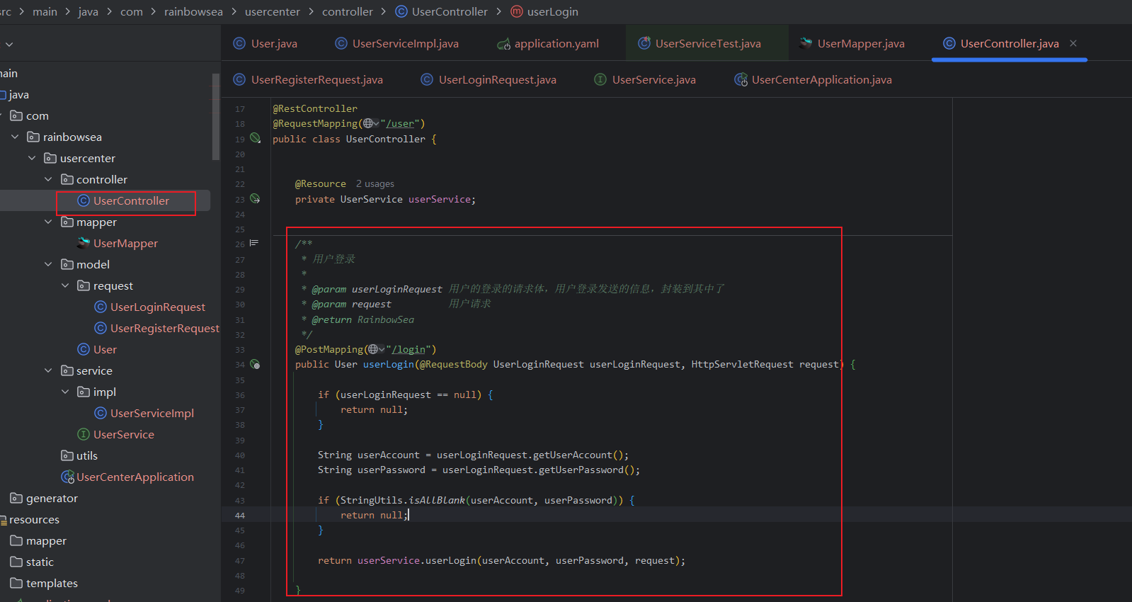 import com.rainbowsea.usercenter.model.request.UserLoginRequest;