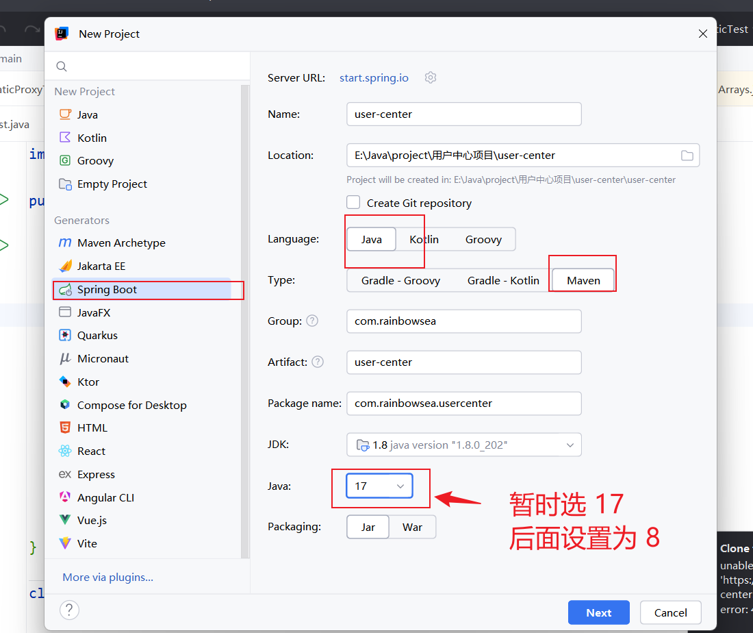 - 使用 Spring Boot 官方模板生成器:https://start.spring.io/