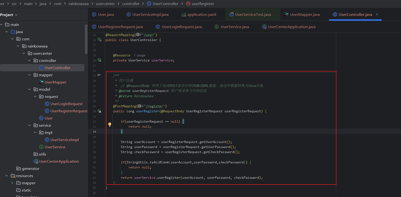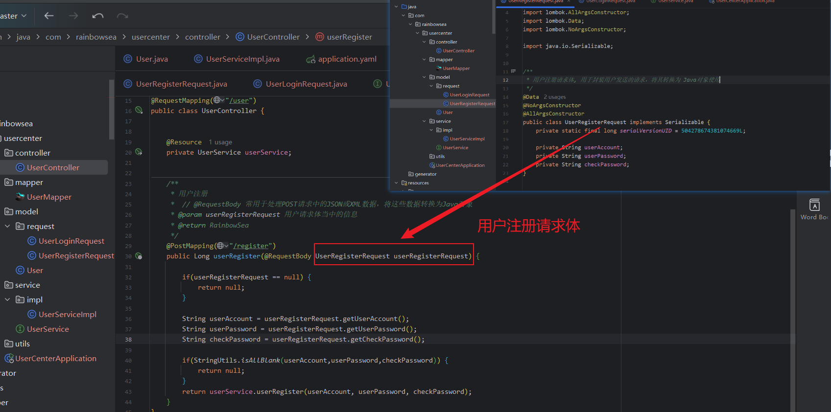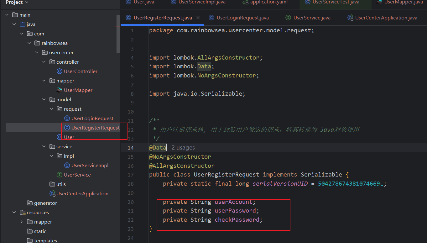 import com.rainbowsea.usercenter.model.request.UserRegisterRequest;