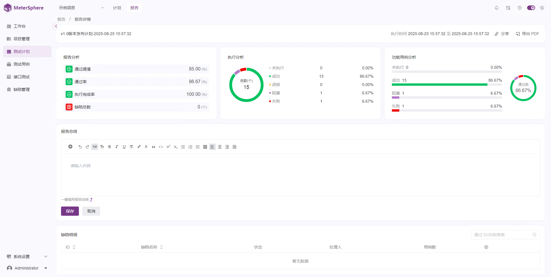 - 一体化测试管理:从测试用例管理,到测试计划执行、缺陷管理、测试报告生成,具有远超 TestLink 等传统测试管理工具的使用体验